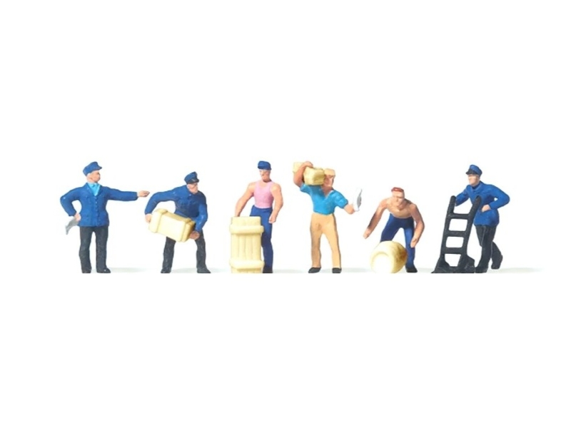 Set de six hommes au travail à l'échelle 1 : 160 ème. Ensemble d'ouvrier avec accessoires. Personnages et accessoires de la marque Preiser, référence 79016.